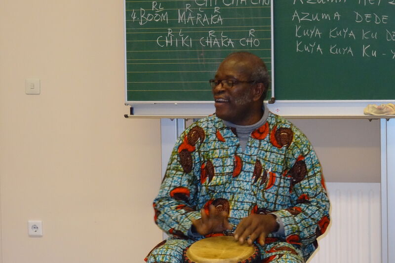 Alle Jahre wieder im November kommt er: Morphius, unser trommelnder Freund aus Ghana in Afrika. Die Freude der Kinder war wie immer groß, lieben sie doch dieses Zusammenspiel von Körper, Gesang und Händen. Ob die Rhythmen nun zuerst auf den Beinen oder dann auf den Trommeln versucht werden - einfach ist es nicht. Und wenn dann Morphius, seines Zeichens Musikprofessor, seine afrikanischen Klänge durch die Schule schmettert, kann man schon vor Neid erblassen. Auf alle Fälle sorgt das Trommeln am Morgen für eine wunderbare Entspannung aller Sinne. Wie immer konnten wir Morphius eine Summe Geldes für sein schulisches und berufliches Förderprojekt für junge Menschen in Winnipeg/Ghana mit auf den Weg geben. Wir freuen uns auf das nächste Jahr, wenn wir Morphius mit den Worten begrüßen können: „Morphius, our best friend, you’re welcome in Gelting!“
