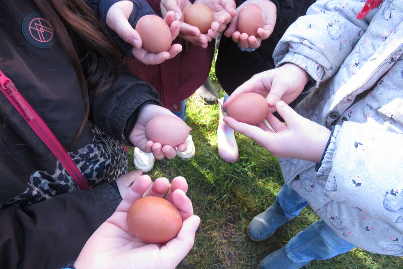 Unsere drei Eingangsklassen waren auf Mini-Reise und haben jeweils einen eintägigen Ausflug zum „Dingholzer Hofkiosk“ von Inneke und Sven Nissen gemacht. Hier erwartete die Kinder das Projekt vom „Huhn zum Ei“: Die Kinder erfuhren unter anderem alles über Hühner und deren Haltung, woran man ein frisches Ei von einem alten Ei unterscheiden und wie man rohe und gekochte Eier auseinanderhalten kann. Als Highlight durften die Kinder sogar die Eier-Sortiermaschine selbst bedienen und sich ein 10er-Paket Eier eigenhändig abpacken und mit nach Hause nehmen. Das nächste Frühstücksei schmeckt dann bestimmt besonders gut!