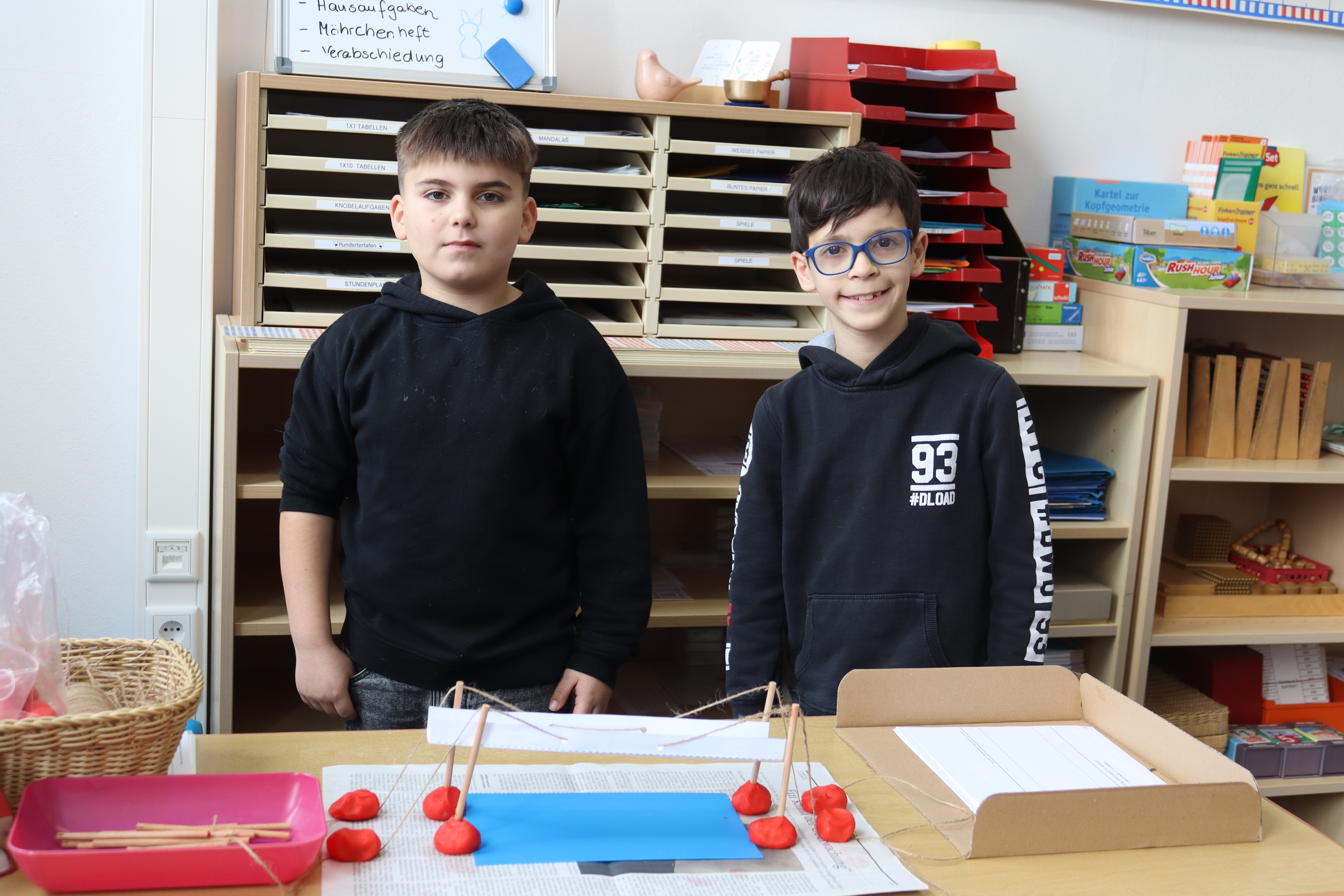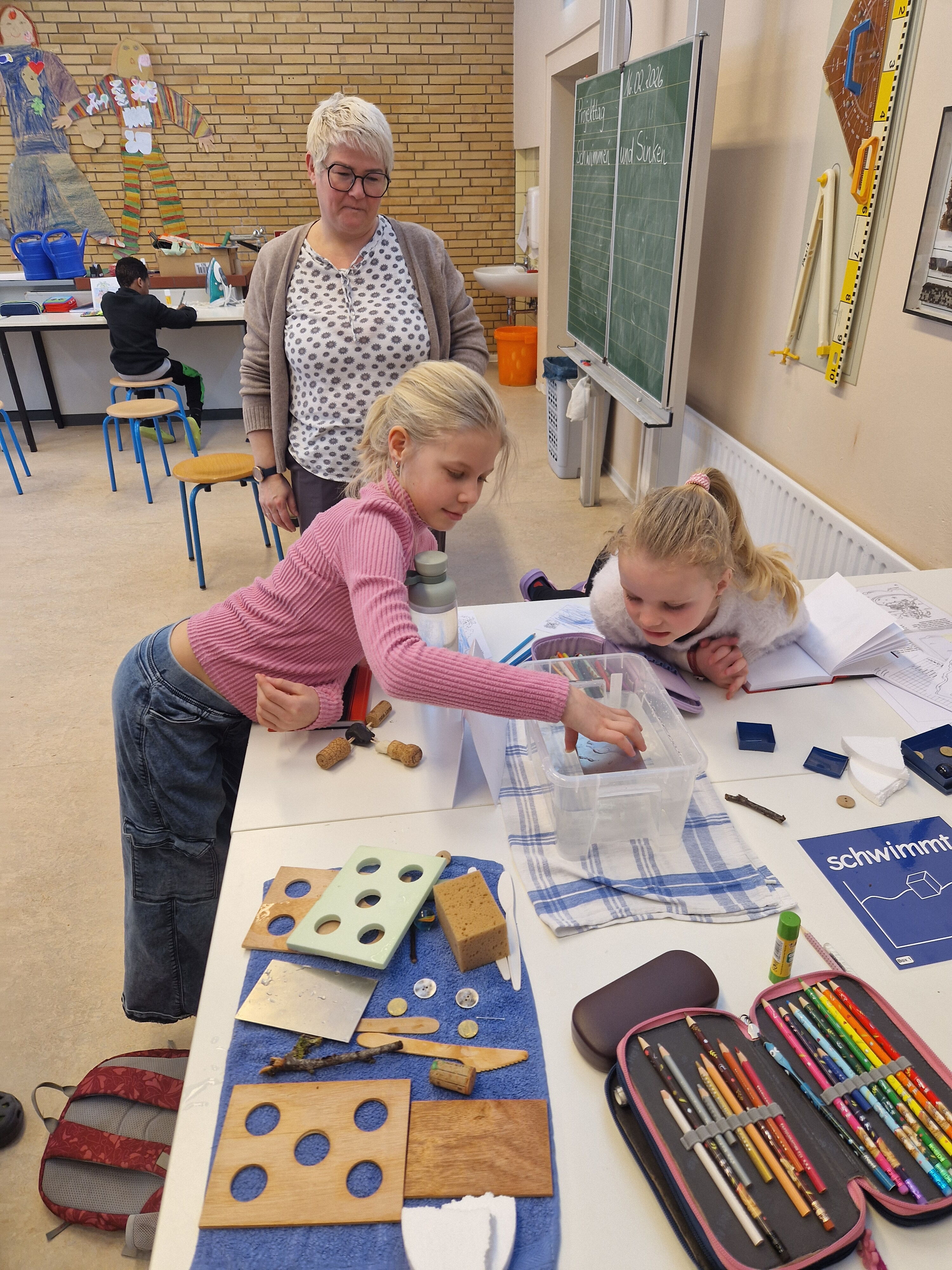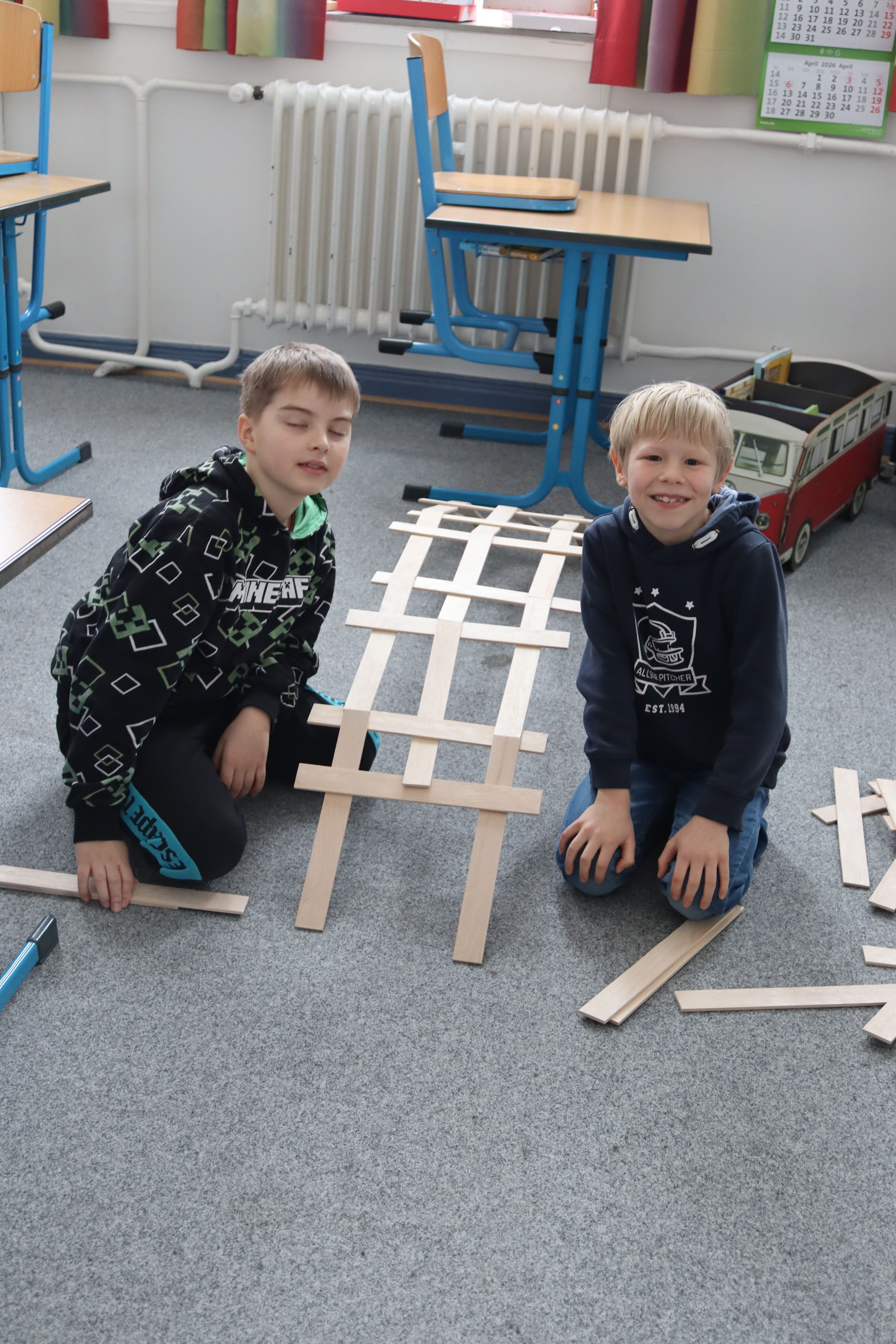 Insgesamt standen 13 Projekte zur Auswahl, aus denen die Kinder täglich neu wählen konnten. So entstanden Fahrzeuge und Maschinen, tragfähige Brücken sowie beeindruckende Kettenreaktionen durch das Schulgebäude. Papierflieger wurden auf ihre Flugeigenschaften getestet, Experimente mit Luft und Wasser machten physikalische Kräfte sichtbar, und in der Magnetismuswerkstatt wurden unsichtbare Kräfte erforscht.